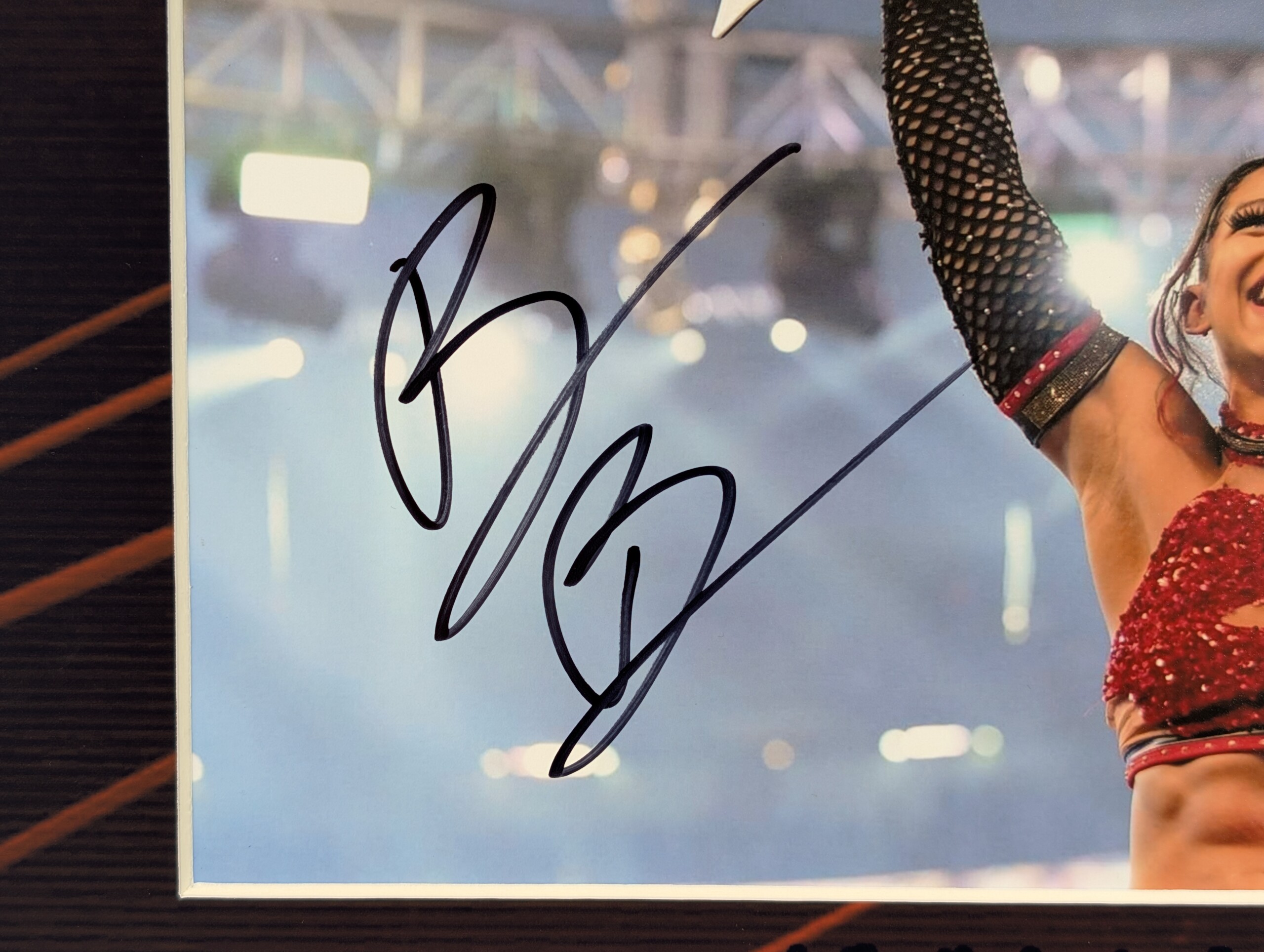 The sleek gloss black frame enhances the bold presentation, while the included photographic proof of signing provides reassurance that your autograph was personally signed by Bianca Belair herself.