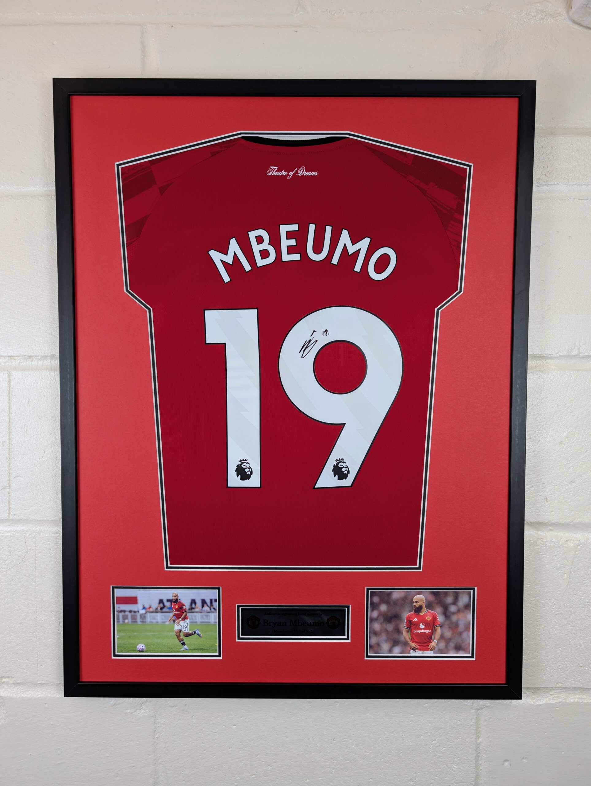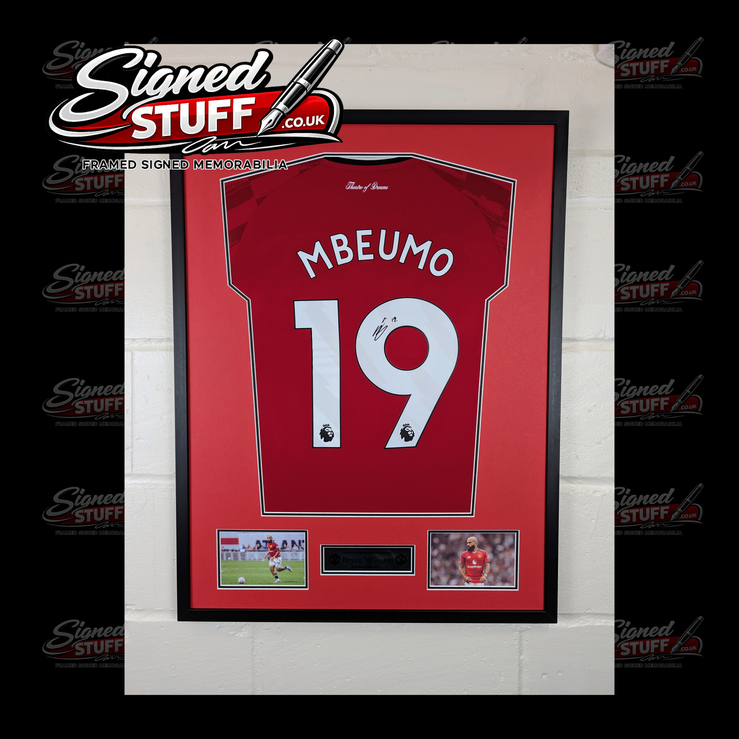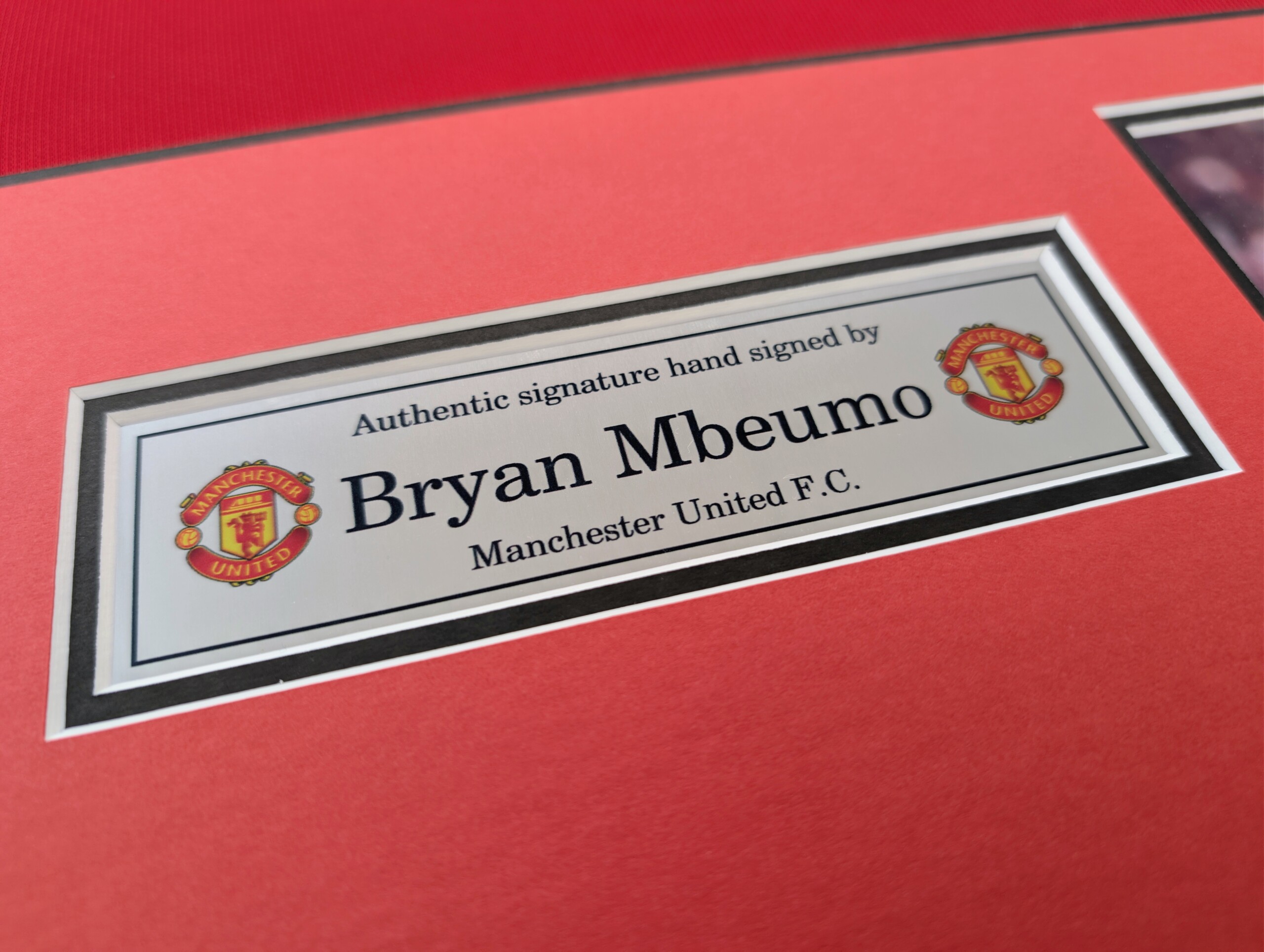 Bryan Mbeumo Signed Manchester United Football Shirt – Premium Framed Display with Double Mount, Aluminium Plaque & Photo Proof Authentication