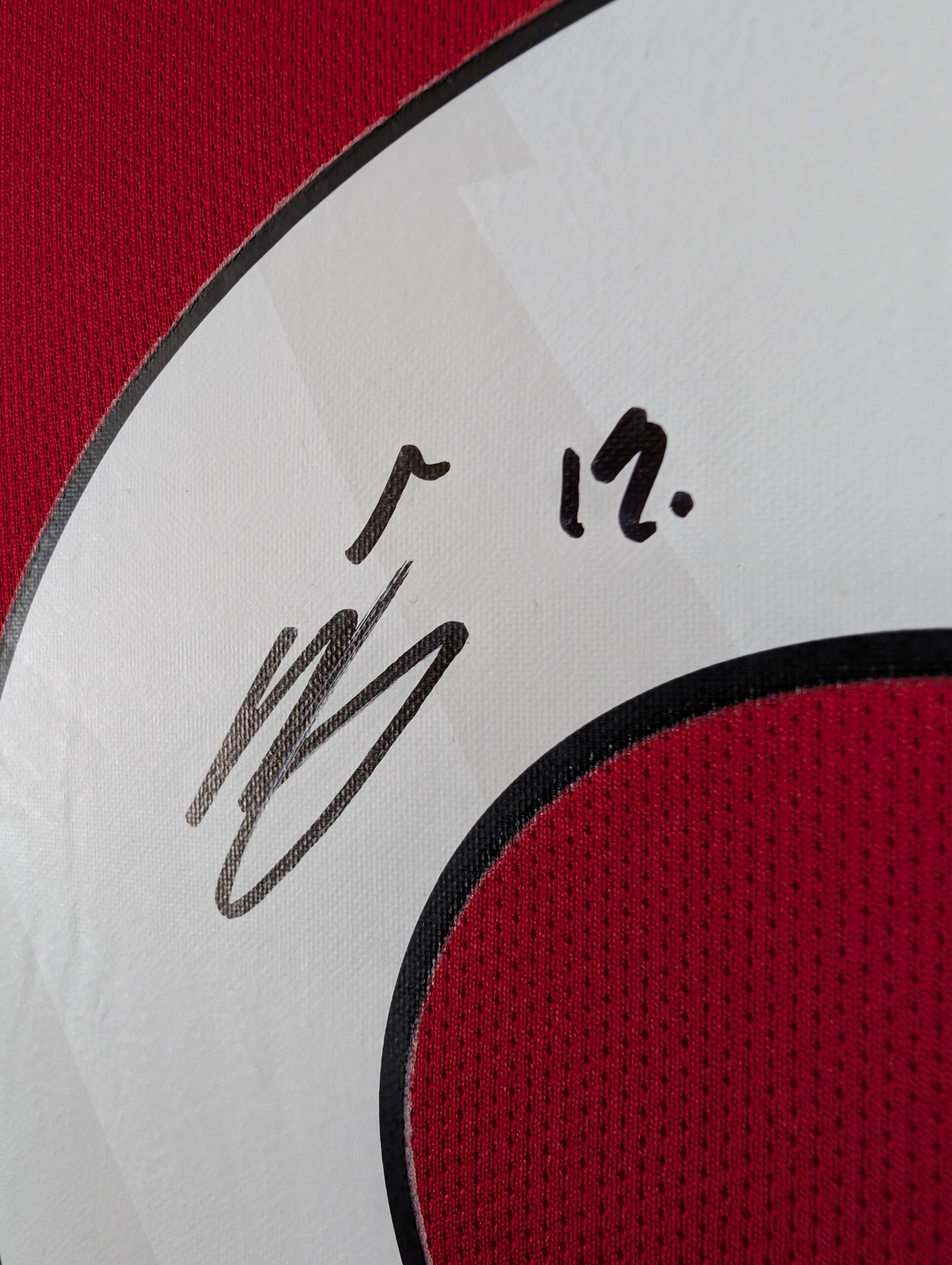 This exceptional presentation features the signed shirt expertly mounted within a high-quality frame using a stylish double mount, creating depth, contrast and a striking visual finish that enhances the iconic club colours. It’s a display piece built not just to be admired — but to last.