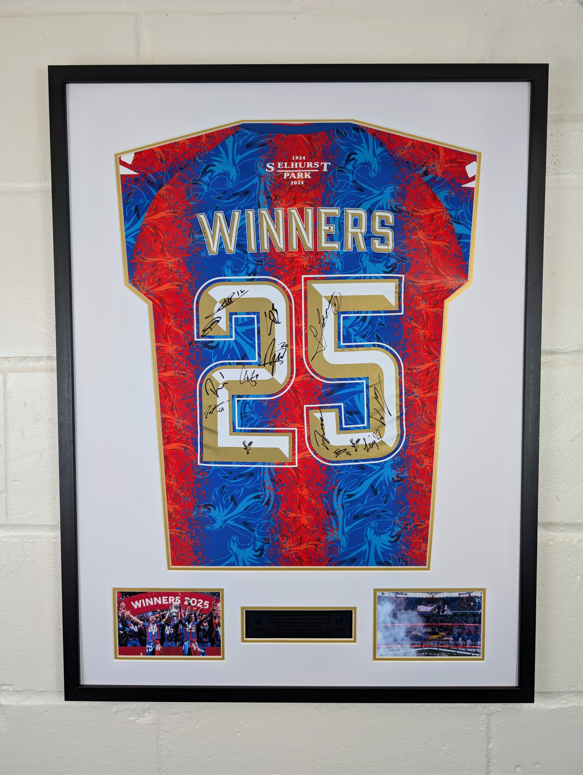 Crystal Palace FA Cup Winners 2025 Signed Football Shirt – Premium Framed Display with Double Mount, Printed Aluminium Plaque & Photo Proof Authentication