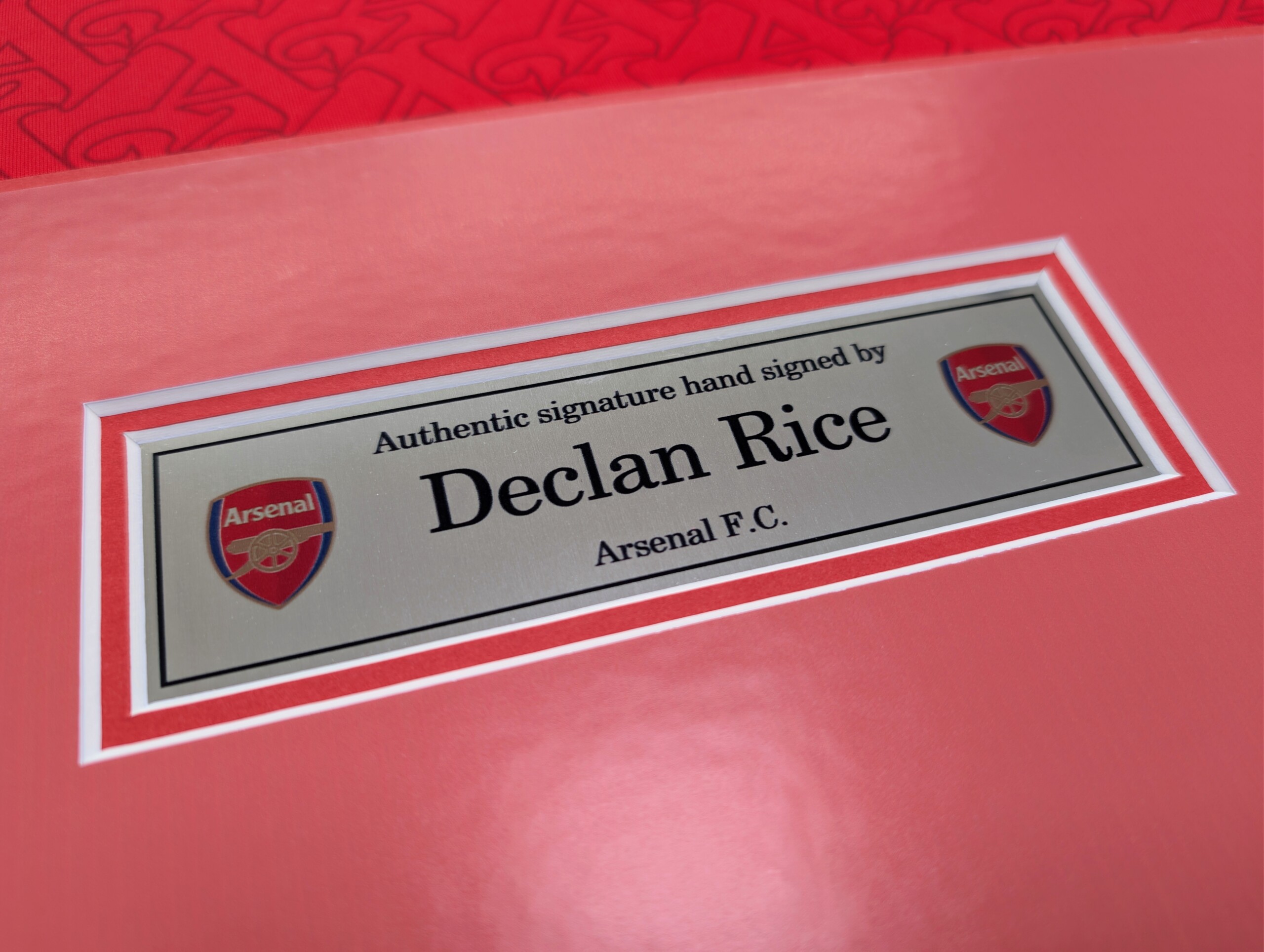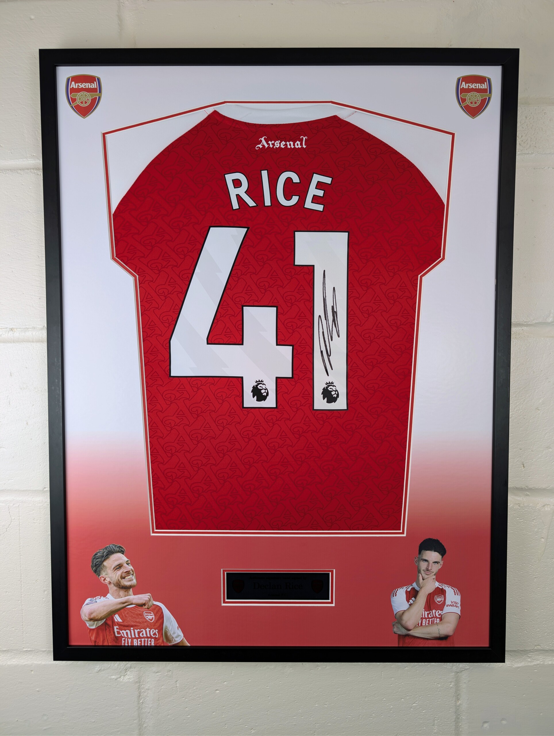 Declan Rice Signed Arsenal Football Shirt – Premium Framed with Black Frame, Double Printed Mount, Aluminium Printed Plaque & ACG Authentication.