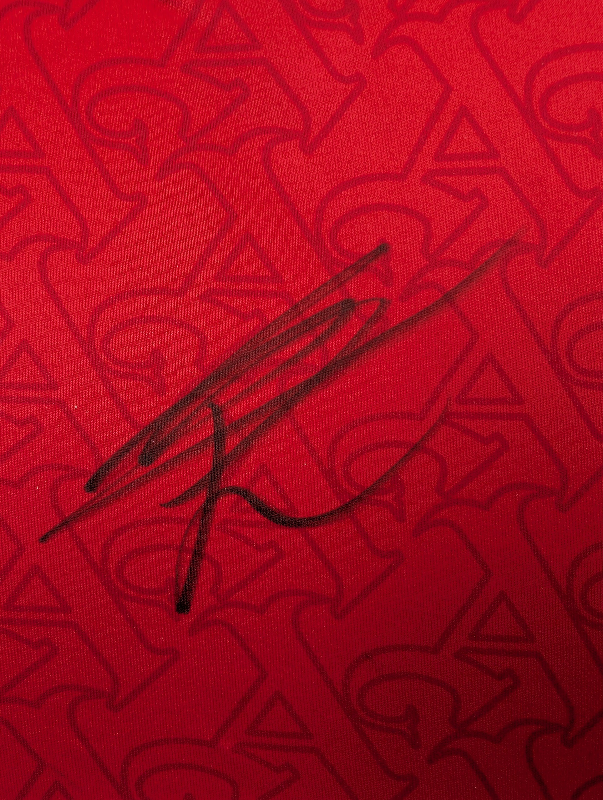 Beautifully presented in a sleek black frame, the shirt is expertly mounted using a double mount backing that creates depth and contrast while perfectly complementing Arsenal’s iconic colours. This high-quality display transforms the shirt into a striking centrepiece ideal for any home, office, or memorabilia collection.