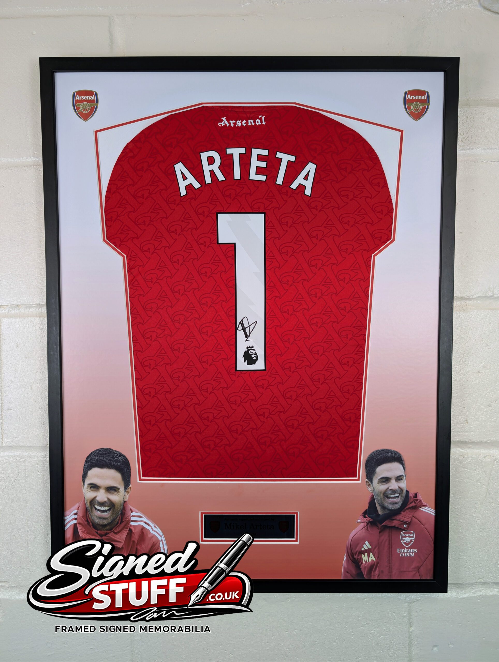 Mikel Arteta Signed Arsenal Home Football Shirt – Premium Framed with Printed Mount, Aluminium Plaque & ACG Authentication.
