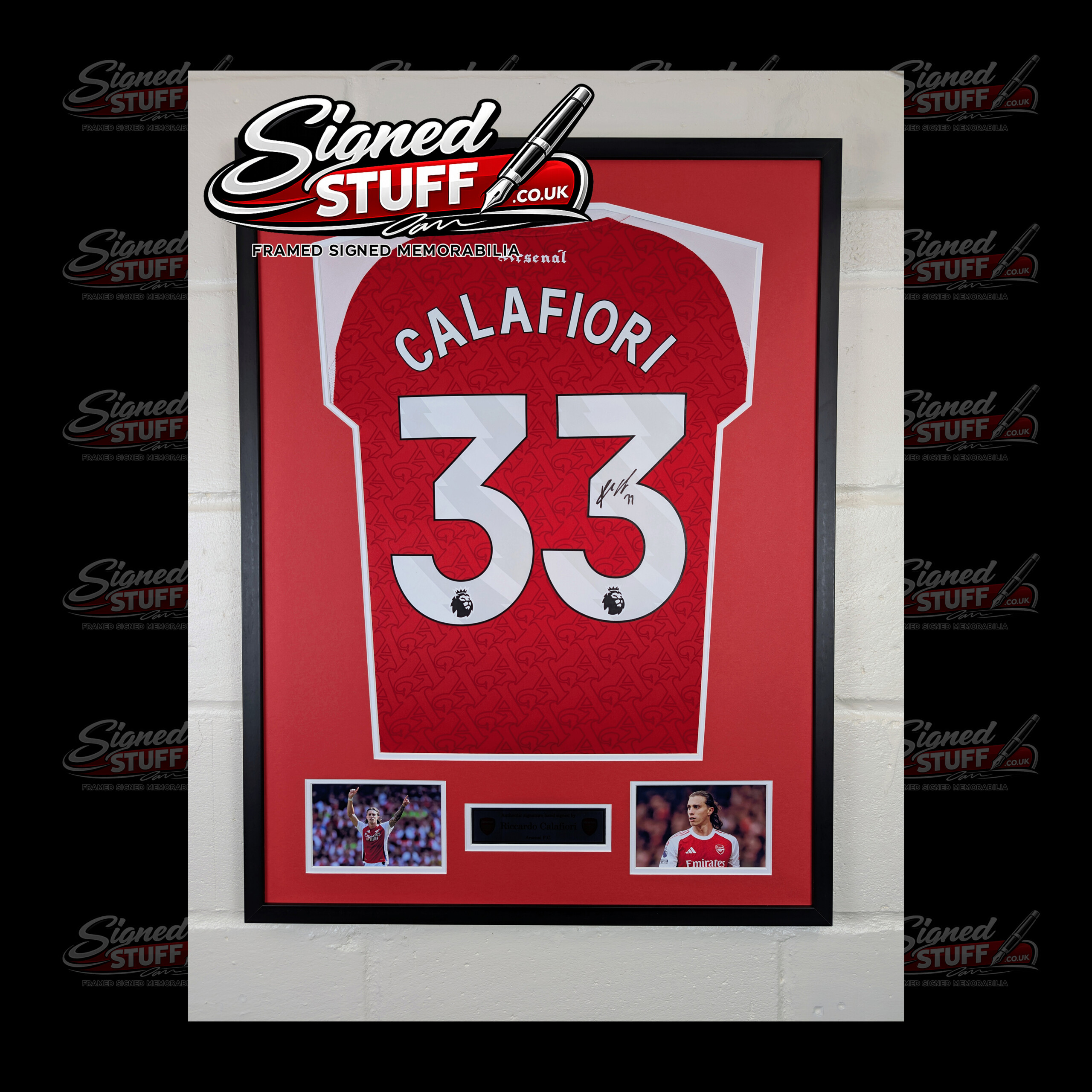 Elevate your sports memorabilia collection with this Riccardo Calafiori Signed Arsenal Home Football Shirt – Premium Framed, Aluminium Plaque & ACG Authentication. Expertly crafted in house for fans and collectors who demand the very best. Whether celebrating a favourite player, commemorating an iconic season, or investing in a standout showpiece, this framed shirt offers unmatched quality and presentation.