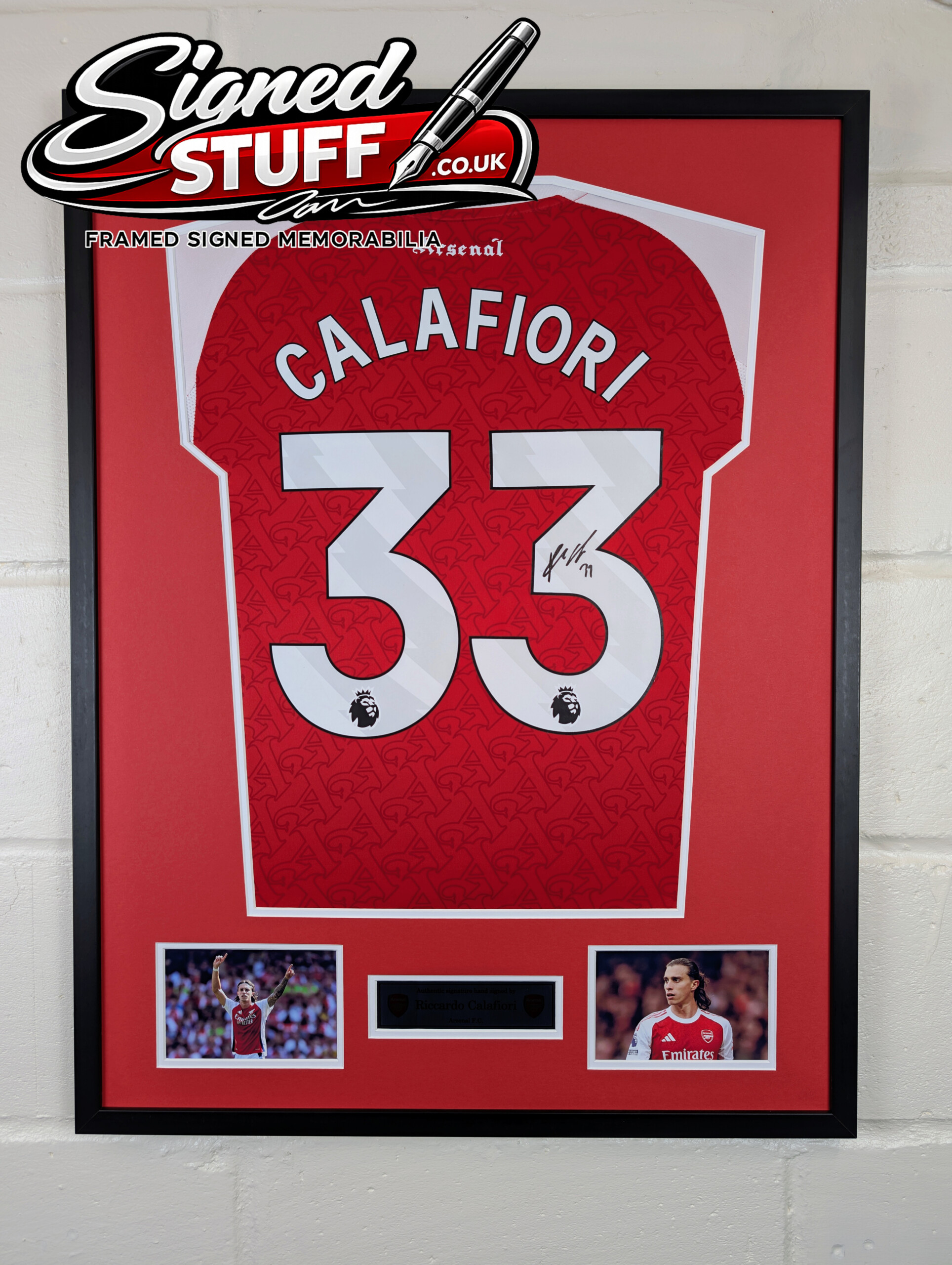 Riccardo Calafiori Signed Arsenal Home Shirt Framed