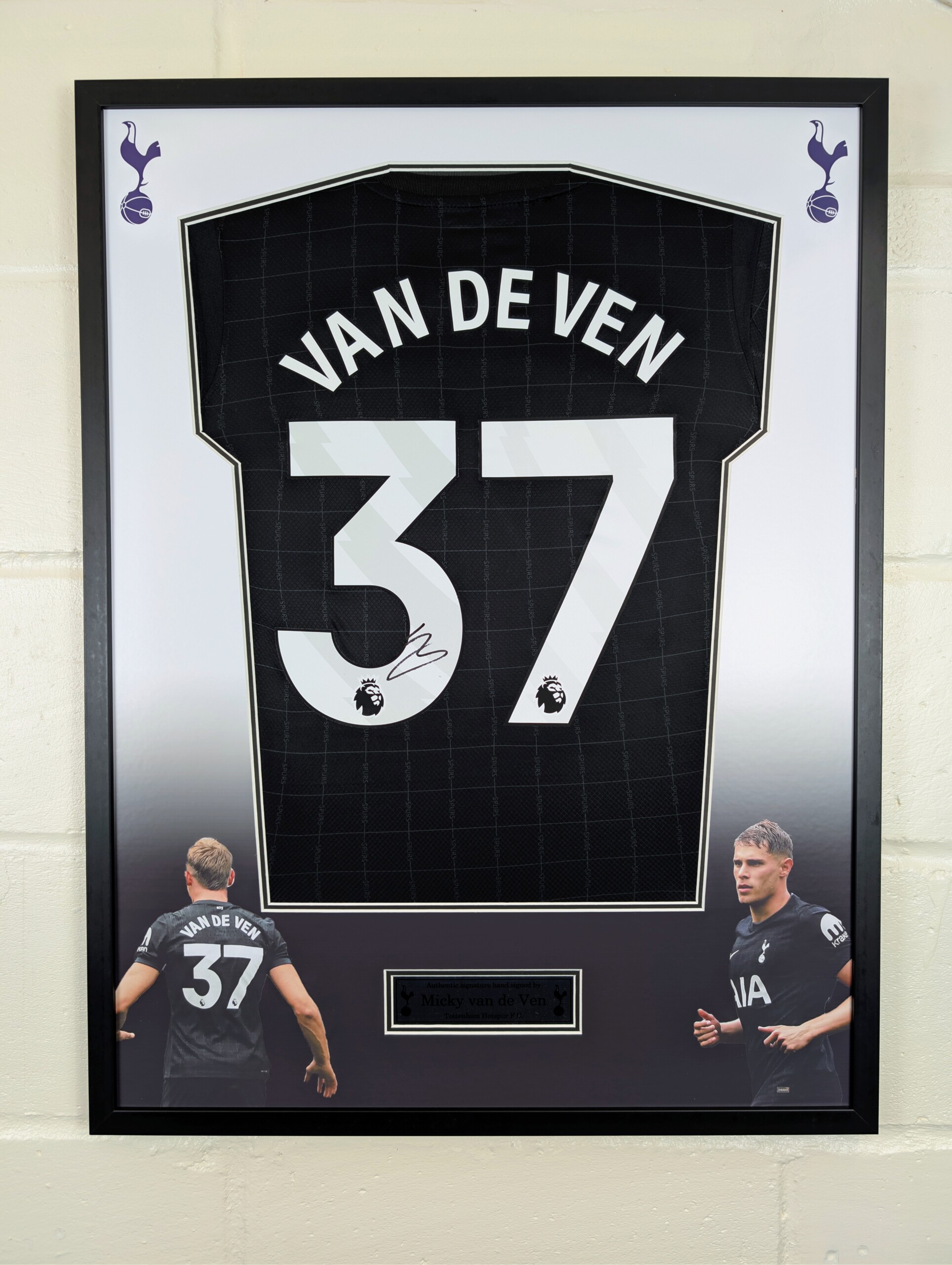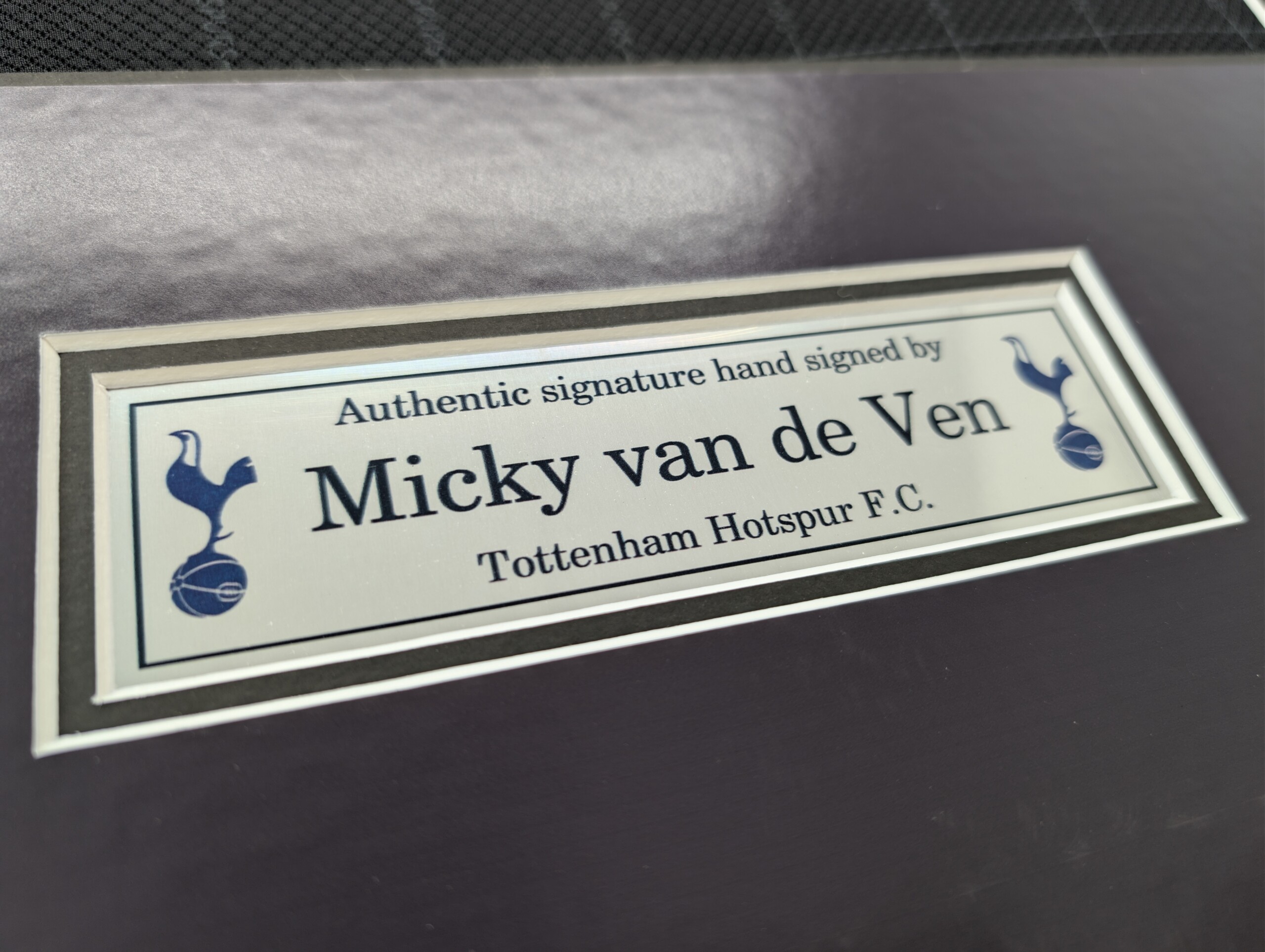 Micky van de Ven Signed Tottenham Away Football Shirt – Premium Framed with Printed Mount, Aluminium Plaque & ACG Authentication.